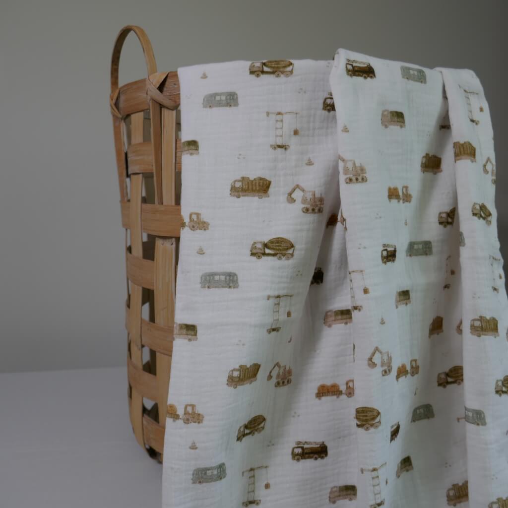 Home » Assortiment » Verzorging » Hydrofiele doeken/ swaddles » Swaddles met motief » Hydrofiele doek bouwvoertuigen